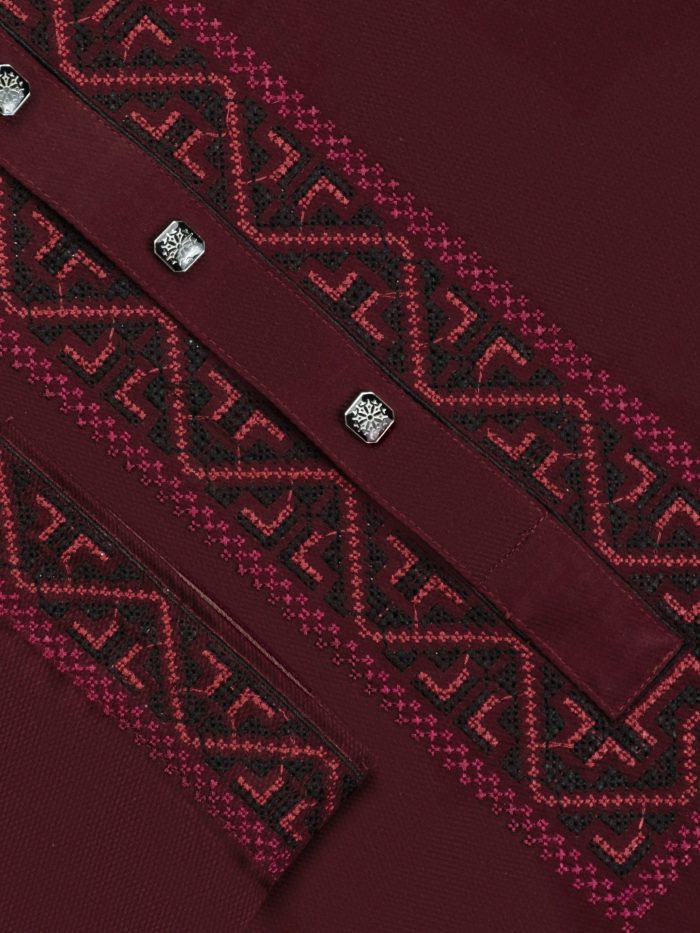 Design: Elegant embroidery decorates the collar, overlay placket, adding a touch of sophistication.