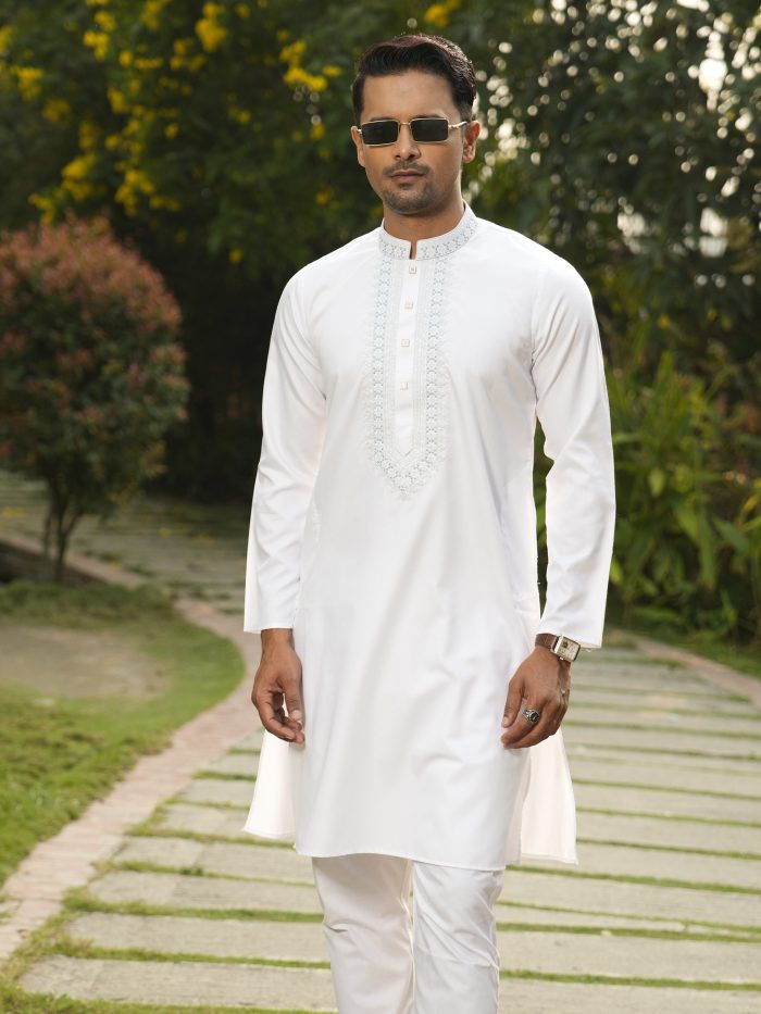 Details: Exquisite Punjabi crafted from luxurious bamboo cotton, decorated with intricate embroidery for a touch of elegance.