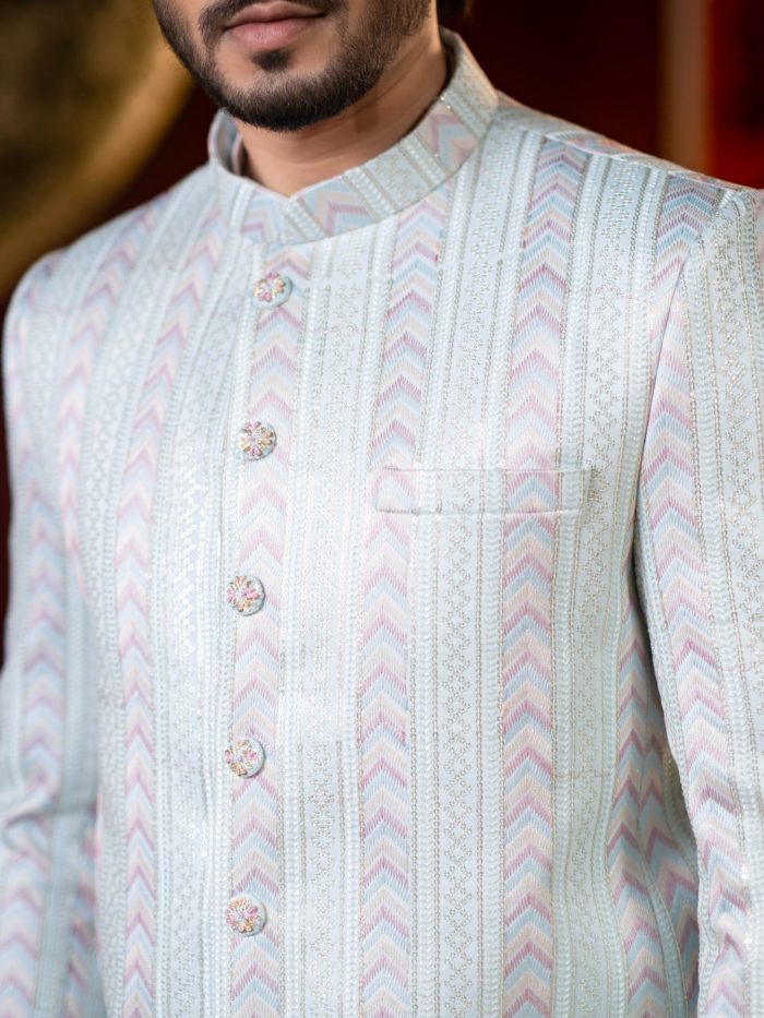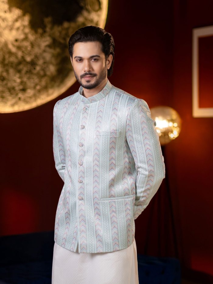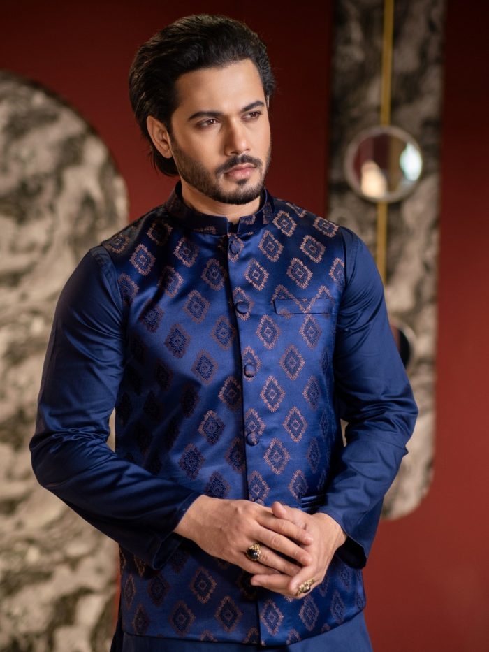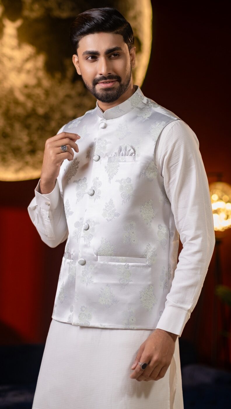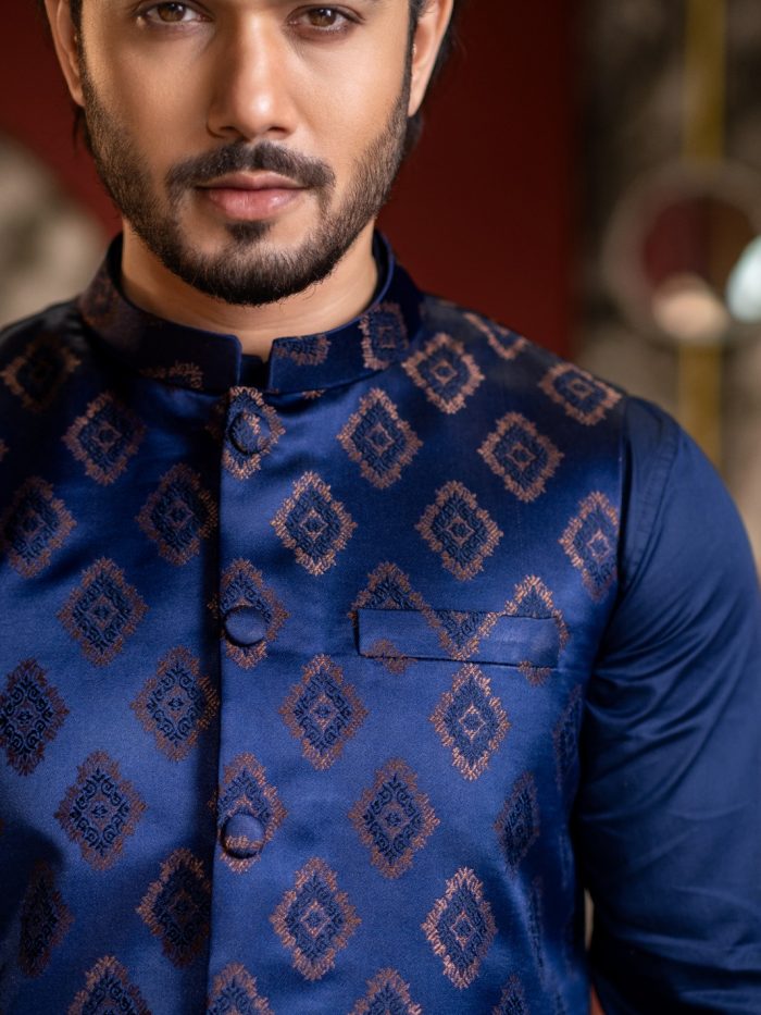 Crafted with refined detailing and a regal sensibility, this Ethnic Koti embodies the timeless elegance of Bengali tradition. Designed to elevate festive and formal ensembles, it features a structured silhouette with premium fabric that offers both comfort and sophistication. Intricate finishes and thoughtful tailoring make it an ideal layer over panjabi or kurta, adding depth and distinction to your look. Perfect for weddings, celebrations, and special occasions where heritage meets modern refinement.