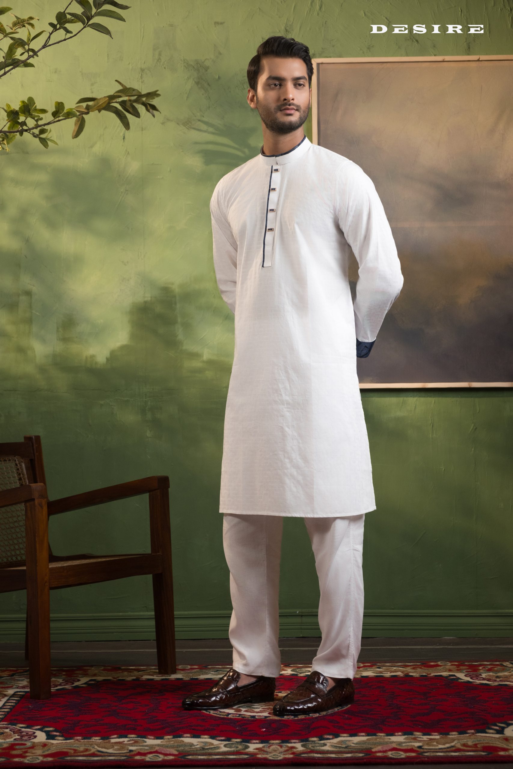 Crafted from premium quality breathable fabric, it ensures superior comfort while maintaining a sharp and polished look. The subtle contrast accents add a distinctive touch, making it perfect for festive occasions, family gatherings, Friday prayers, or semi-formal