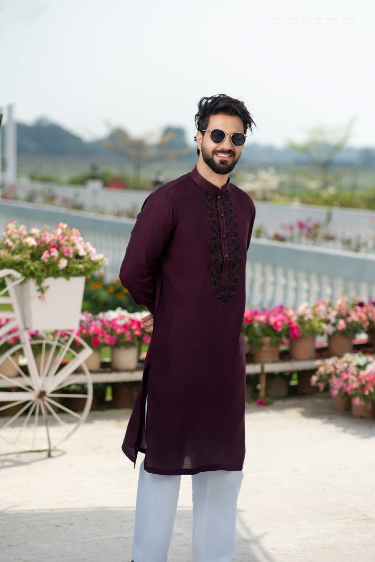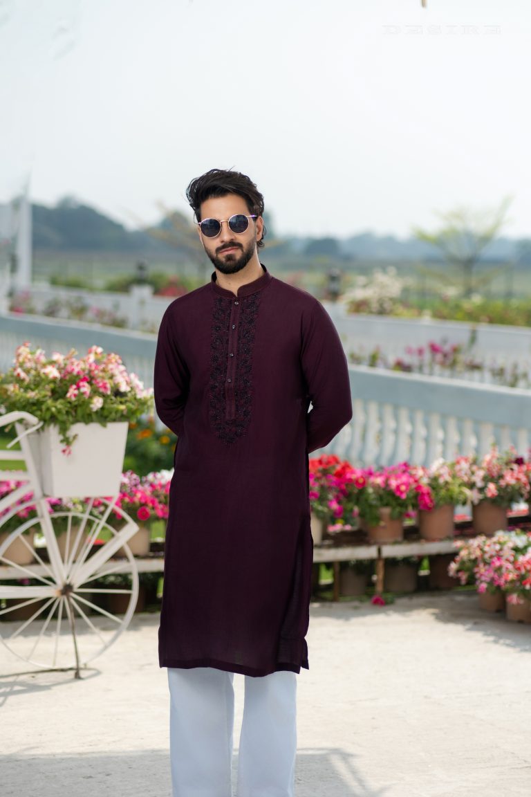 Experience timeless elegance with our Pure Indian Cotton Panjabi with Karchupi Work—a perfect blend of heritage craftsmanship and modern sophistication. Crafted from premium quality Indian cotton, this Panjabi ensures superior comfort, breathability, and a soft touch against the skin, making it ideal for all-day wear in any season.PK Grace Fabric Karchupi Work Panjabi. RR-555